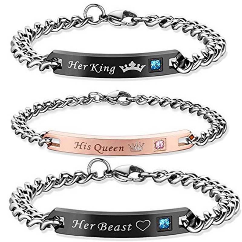 Queen Jewelry Bracelet Bracelets Her Unique Bracelets Steel Beautiful Couple His For Matching Stainless His Lovers Armb King Chic