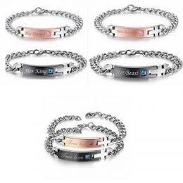 Stainless Steel Bracelet Her King His Queen Her Beast His Beauty Couple Bracelet Bangle Cuff Women Men Wedding Jewelry Gift Drop Ship 162393 Charm