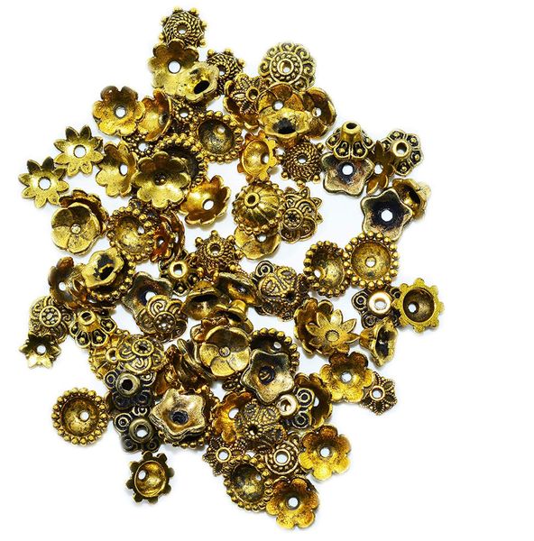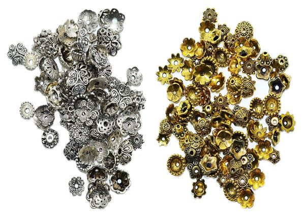 Goelx Antique Metal Tibetan Bead Spacer Designer Flower Caps For Jewelry Making Supplies Golden Silver Mix Multi Design Assorted Pack Of 100 Golden