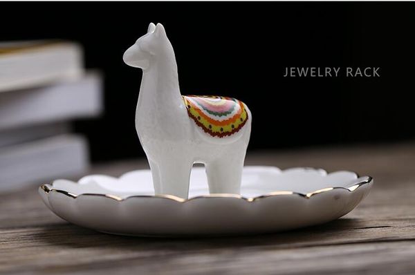 Cheeseandu Ceramics Alpaca Jewelry Tray Ring Holder Cute Elegant White Llama Organizer Jewelry Display Holder Ornaments Engagement Wedding Rings