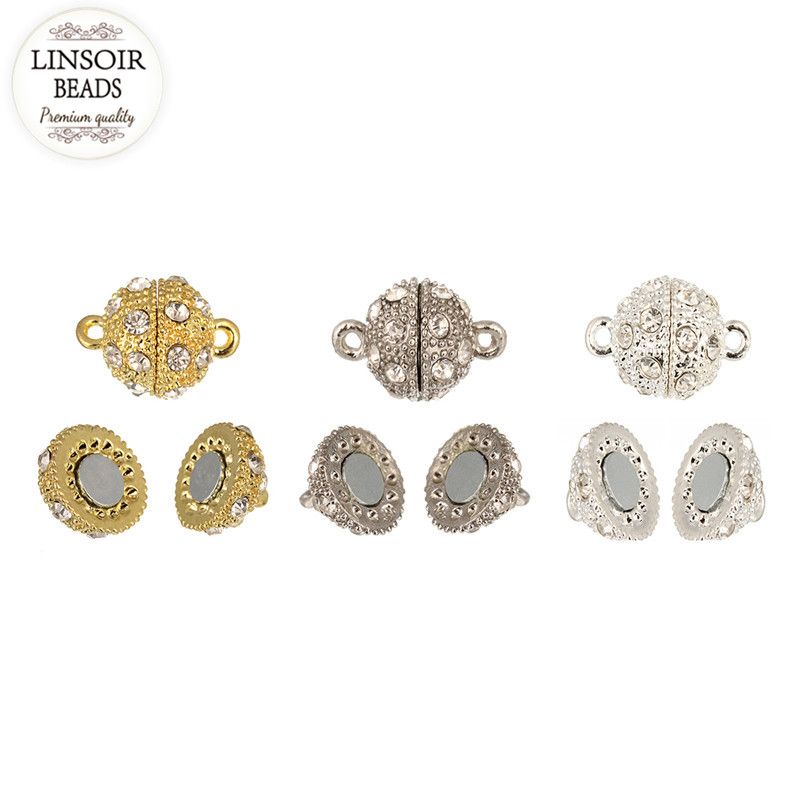 Linsoir 10pcs Lot Crystal Strong Magnetic Clasps For Necklace Bracelet 8 10 12mm End Clasps Connectors For Jewelry Making F838