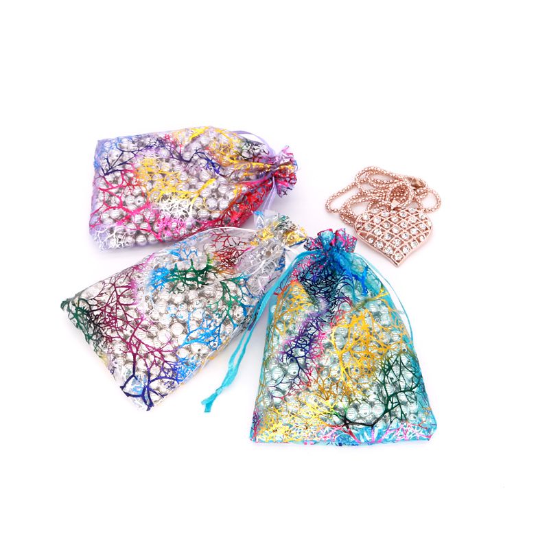 500pcs 9 12 Coral Pattern Snow Yarn Bag Organza Bundle Mesh Gift Bag Jewelry Bags Drawable Earring Necklace Beads Candy Gift Storage Pouches