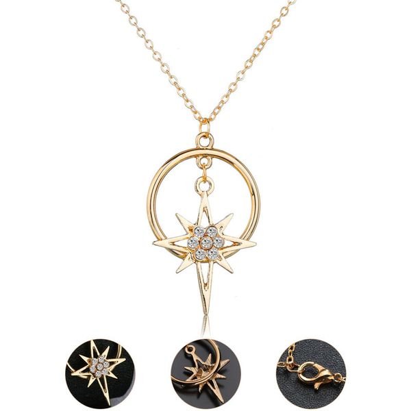 Wholesale Fashion Alloy Star Sun Crystal Chain Pendant Long Necklace Female Wedding Party Gold Plated Necklace Costume Jewelry Accessories Silver