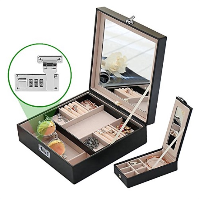 Built into the lid the mirror is almost as wide as the jewelry box which measures 685 x 485 x 165 inches and is perfect for applying makeup on the go. Bewishome girls jewelry box jewelry organizer with lock 3 layers jewelry display storage case earring ring necklace holder organizer portable travel case for women girls black faux leather ssh77b. Skip to main content.