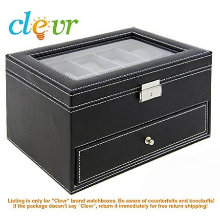 Watch Box Large 20 Mens Black Leather Display Glass Top Jewelry Case Organizer Watch Box Leather Display Glass Top Jewelry Case Organizer Storage