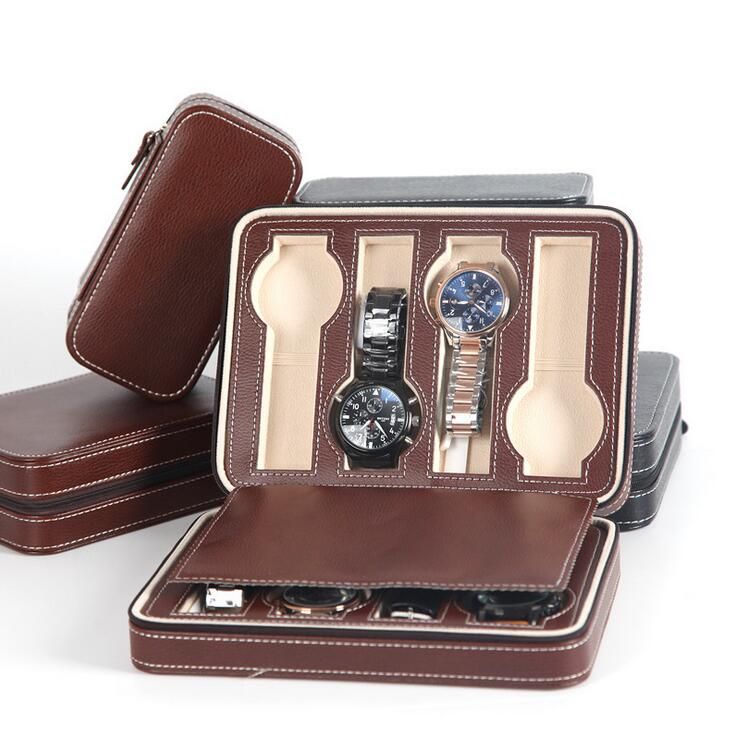 Pu Leather Watch Box 2 4 8 Grids Travel Watches Storage Display Tray Case Zipper Boxes Mens Jewelry Organizer Black Brown 3 Size Watch Storage Cases